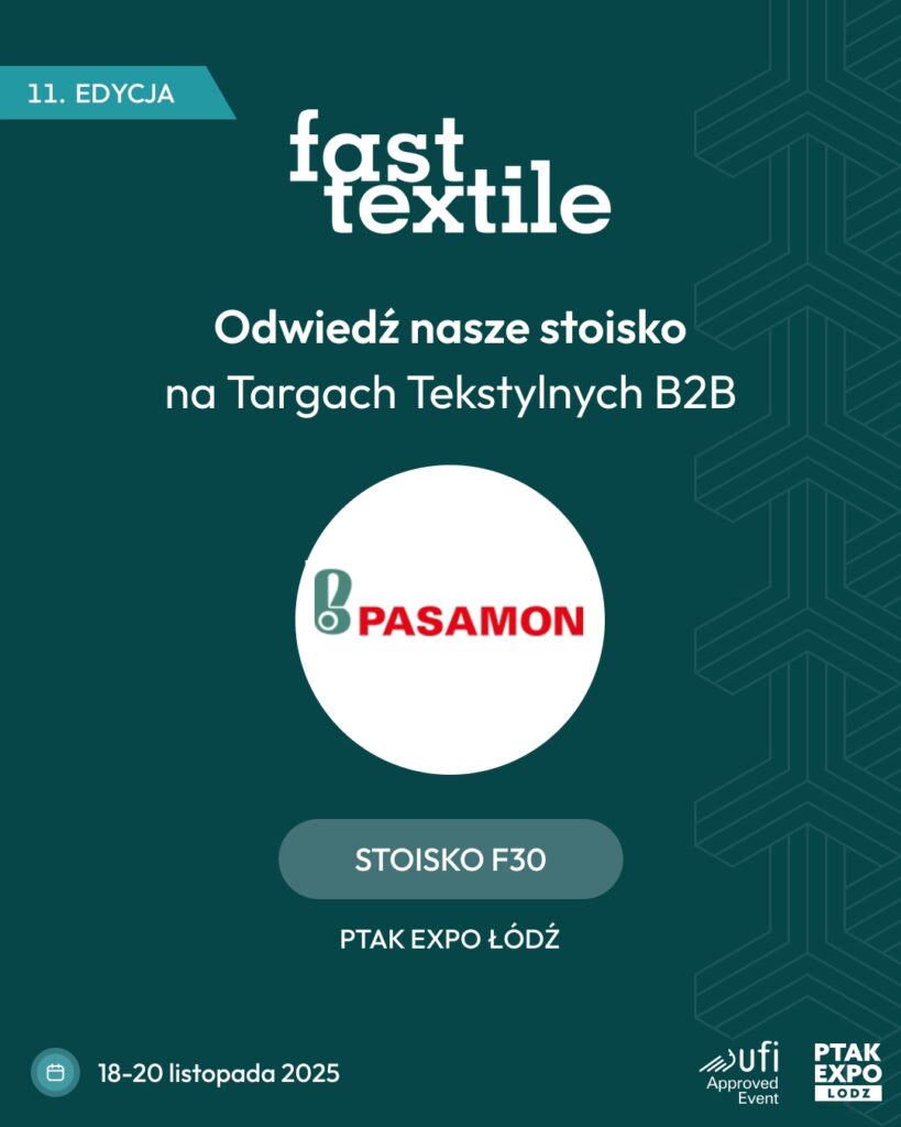 Zapraszamy na nasze stoisko F30 podczas targów Fast Textile 2025, w dniach 18-20 listopada 2025 w Ptak Expo Łódź w Rzgowie k/Łodzi.